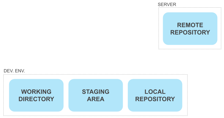 Local Repository and the Staging area both live in the same directory as hidden files (.git)